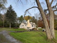 Spacious home located on .84 acres with a circular blacktop driveway. This property overlooks the Village with a wooded lot behind the home, an above-ground swimming pool and storage building. Enter this home from the front deck into the foyer with a closet. A large picture window brightens the living room with a gas fireplace and hardwood floors. The formal dining area has French doors that open onto the back deck with views of the woods and coy pond with fountains and waterfalls. The eat-in kitchen includes a refrigerator, garbage disposal, dishwasher, electric cooktop and built-in oven and leads to the mudroom and side door. On the main floor you will also find the spacious primary bedroom, a second bedroom, a full bath with heated ceramic tile flooring, a walk-in ceramic tile shower and two hall closets. Upstairs you will find 2 additional bedrooms, an office and a full bath. The full basement includes a family room with a wet bar, workshop, storage room and a door that leads to the 1 car garage.